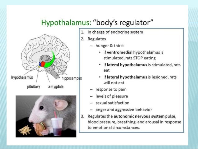 A limbic system structure involved in intense memory and emotion particularly fear and aggression. It regulates autonomic or endocrine function in response to emotional stimuli and also is involved in reinforcing behavior. What regulates body temperature sleep and appetite. The hippocampus the amygdala and the hypothalamus. Question 6 The limbic system structure that regulates hunger is called the Question 7 Rather than seeking to change people to fit their environments _____ work to create social and physical environments that are healthy for all. Secondarily affects and regulates blood pressure heart rate hunger thirst sexual arousal and the circadian rhythm sleepwake cycle. The limbic system consists of the phylogenetically old limbic lobe and other subcortical structures and their connections.