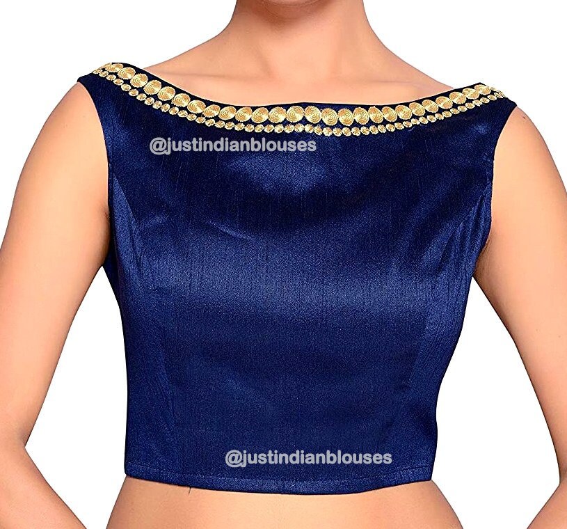 Earn 3 cash back. Sleeveless boat-neck garment with dropped armholes. The shiny blouse can make you sizzle in any event when paired with light colour sarees like blue pink yellow. A hugely popular neckline which continues to stay on trend. Low to High Price. Browse here latest range of women blouses in variety of color and design options. Professionally dry clean perchloroethylene - mild process.