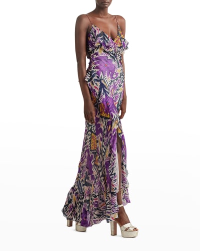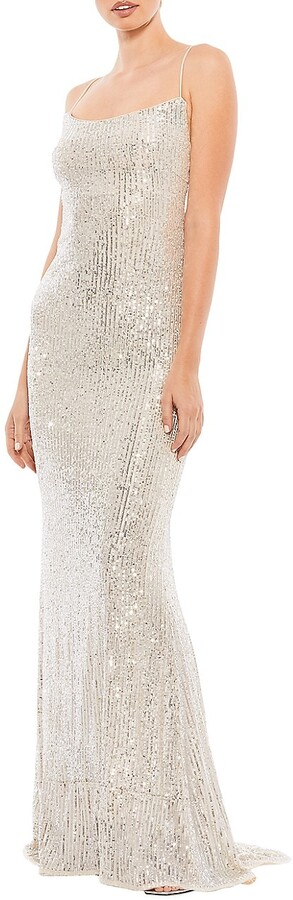 Dazzling nude and silver sequins create this maxi dress.