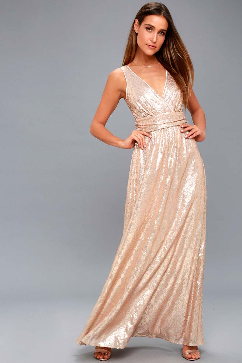 Worn once as a bridesmaids dress. Forever Glam Gold Sequin Mermaid Maxi Dress in 2020 Dresses Gowns of. This Rose Gold Maxi Dress with Sequins is stunning.