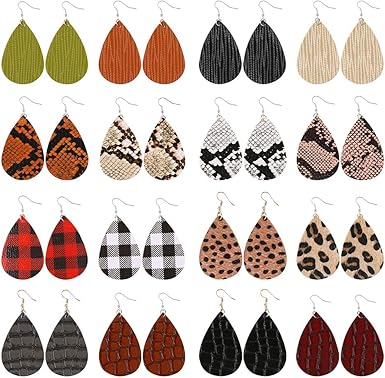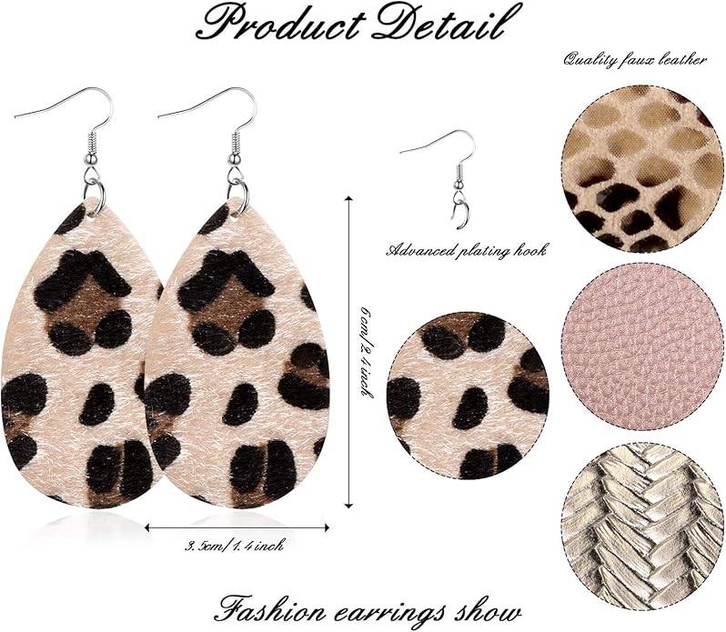 Tear Drop PU Leather Earrings with Nickel free alloy hardware.